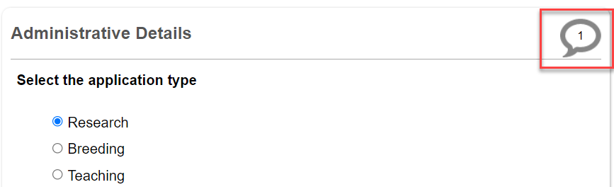 Investigators can write comments to other investigators regarding specific questions within the application (e.g. a student wanting to check their response to a question with their supervisor before submission). These comments will only be visible to other investigators with access to the project and are not visible to Committee Members or the Ethics/Compliance Office.