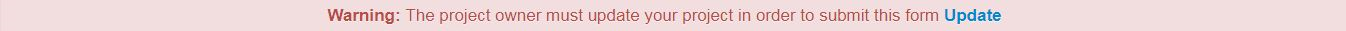 - If you have access to submit, but cannot see the submit button, check for a red warning banner across the top of the project home screen. If you can see this, click Update to enable the submit button to appear.
